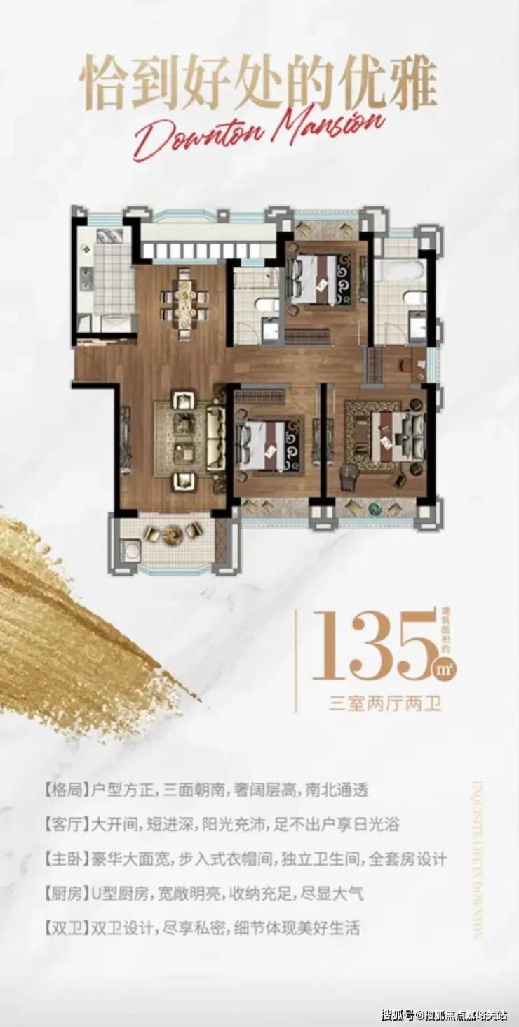 项目整体为英伦风格,住宅外立面采用大理石, 社区全人车分流,车位比1:1.2;中央绿地面积超10000㎡。