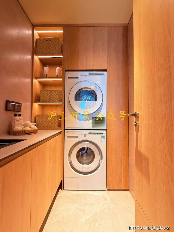 家政间彻底释放了阳台,让阳台成为观景配套或者志趣空间;且位置在进门处,离两个卫生间很近,“洗烘一体”的动线高效。