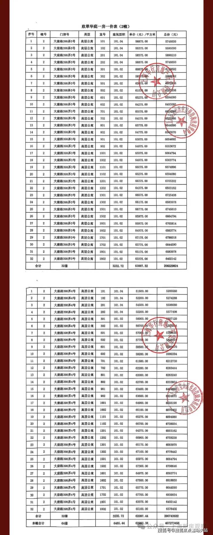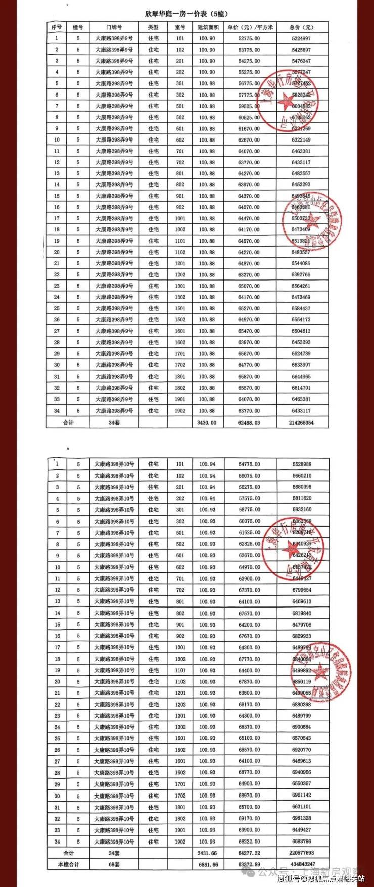 一房一价表如下: