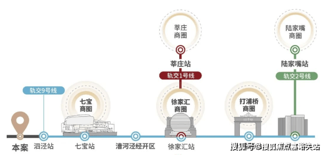 以人民广场为中心,泗泾在这些板块中占据绝对优势。如果以徐家汇副中心或者莘庄副中心为圆点的话,泗泾到中心的距离优势更加不可撼动!