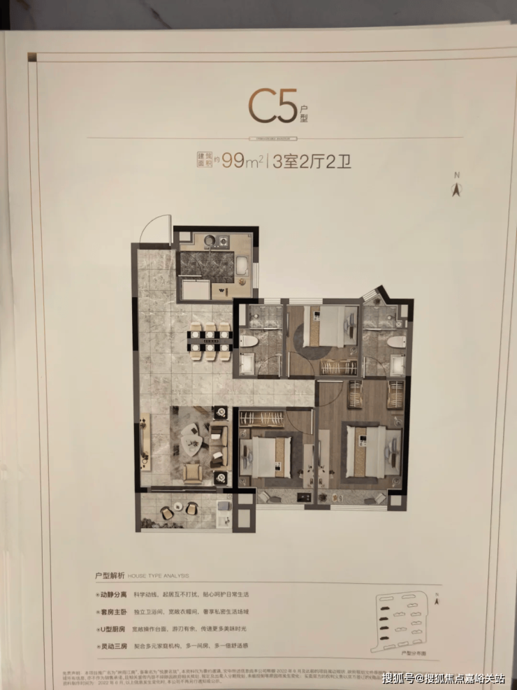 户型介绍:全龄适配,精工户型承载幸福 项目主力在售建面约82-131㎡2-4房,覆盖刚需至改善全需求,毛坯、精装可选,精装标配东芝中央空调、威能地暖、霍尼韦尔新风系统,实现品质一步到位。主力户型中,建面约99㎡三房两厅两卫为经典飞机户型,三开间朝南,主卧套房设计,空间利用率极高,适配三口之家;建面约131㎡四房两厅两卫,四开间朝南,南向总面宽达14.8米,贯通式双阳台搭配270度转角飘窗,可满足三代同堂居住需求,一步到位实现改善梦想。所有户型均方正通透、全明采光,细节之处尽显匠心。