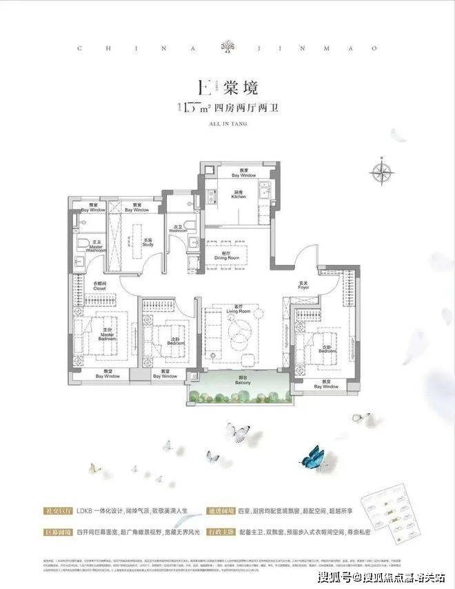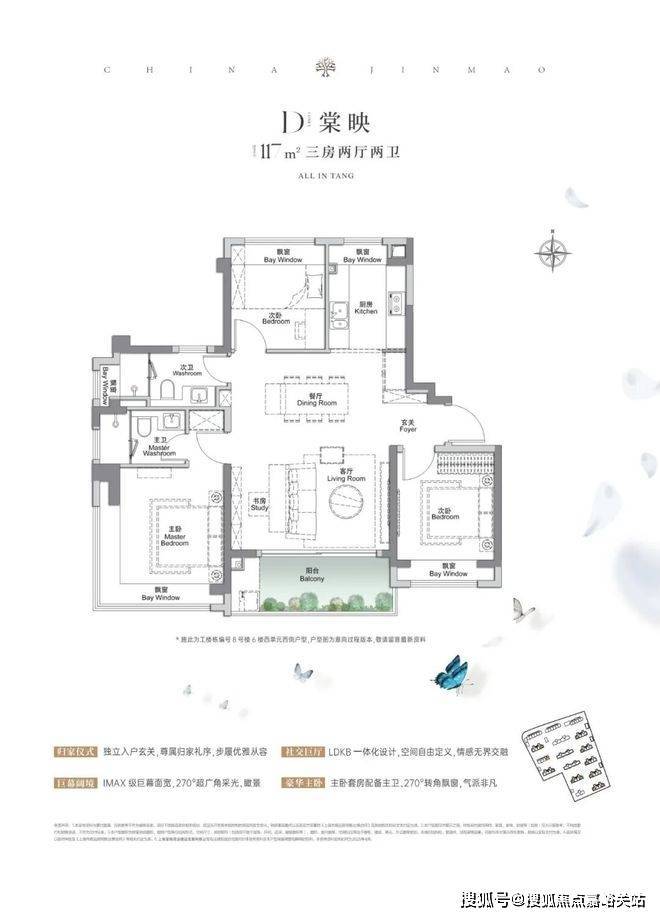 金茂棠前售楼处电话4008569058☑️☑️建面约105㎡3房2厅2卫,做到了三开间朝南+4个飘窗+双面阳台系统+主卧套房设计+270°转角飘窗,该户型的居住体验、舒适度、尺度感,是同级别产品所无法比拟的。金茂棠前售楼处电话4008569058☑️☑️