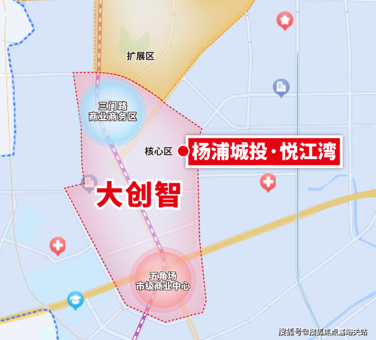 仔细分析,越秀地块与五角场商圈仍有一定距离,位置更偏远一些,周边城市界面比较一般,整体配套能级也不高。