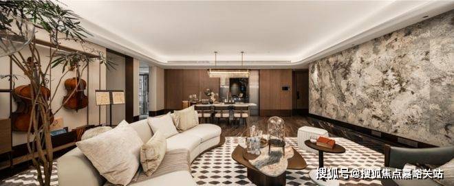 室内空间,是品质最直接的表达。从入户的奢石与金属格栅,到客厅整面铺陈的雪山蓝岩板背景墙,再到 1.8米×0.9米大规格地砖的密拼铺设,细节之处皆是对奢华氛围的精准把控。从一线品牌的厨电卫浴,到四玻两腔的系统窗、全屋的中央空调与新风,这些“内在美”的细节,共同守护着未来居住的健康与舒适度。