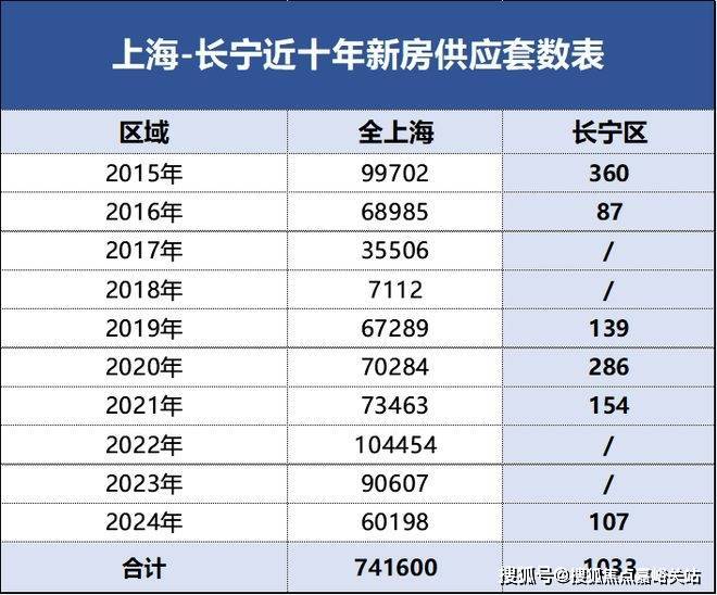 另外,放眼整个长宁,就能发现长宁新房供应极其稀少,2015-2024年整个长宁区新房供应仅1033套,仅占全市的0.11%,不足1%!