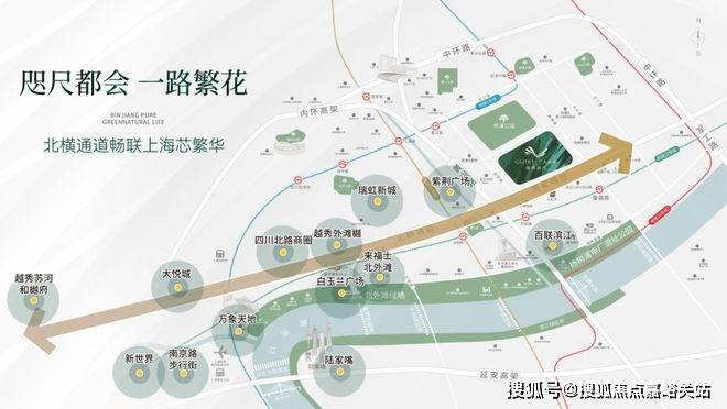 是新杨思地王距内环直线距离的八分之一,从项目出发,13分钟直达陆家嘴,20分钟直达人民广场,将"内环旁"从地理概念转化为生活现实。