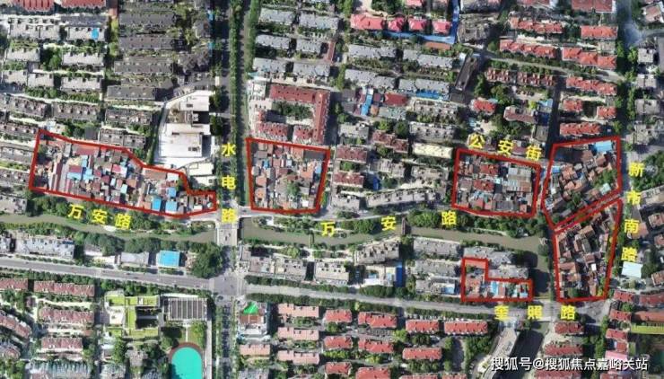 总共7个零散地块,是一个毛地城市更新项目。中间穿插了两条自然河流,一座滨河绿地,多条道路,各自体量都不大,但沿万安路连成一线。