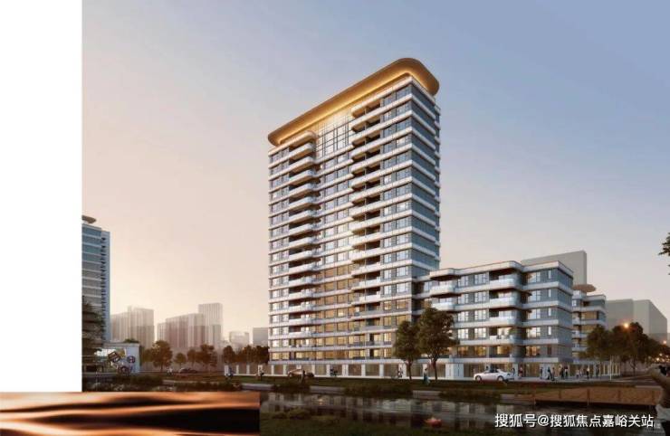 加之建筑顶部的金冠起伏,与景观河交相辉映,串联成金色丝带东西贯通,更是凸显了本项目的高标准、高品质的居住体验。