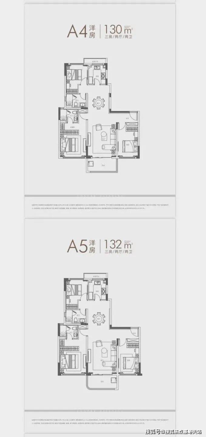 ①、建面约120㎡3房:
