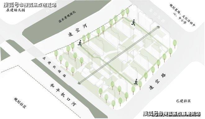 浦发上品社区西侧、南侧均有河道环绕,河道与社区之间是以观光游憩、生态休闲、特色四季于一体,满足休闲逸趣、互动活动,情感交流等使用功能的滨水景观绿化。