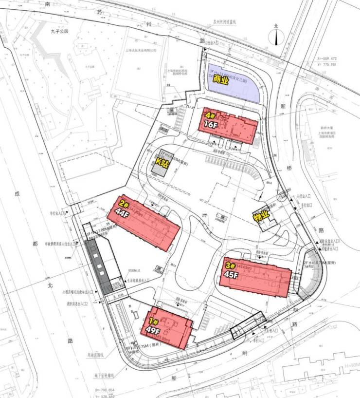 1#地块:分为南北两块:南块,东至新桥路,南至新闸路,西至成都北路,北至成都北路1012弄;北块,东至新桥路,南至新桥路51弄,西至九子公园,北至南苏州路。未来主力产品为超高层住宅。