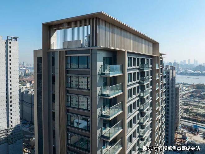 例如立面。 顶级的铝材立面用料大面玻璃结合简洁的直线条大面积无框开敞阳台玻璃的设计,搭配香槟色金属边框