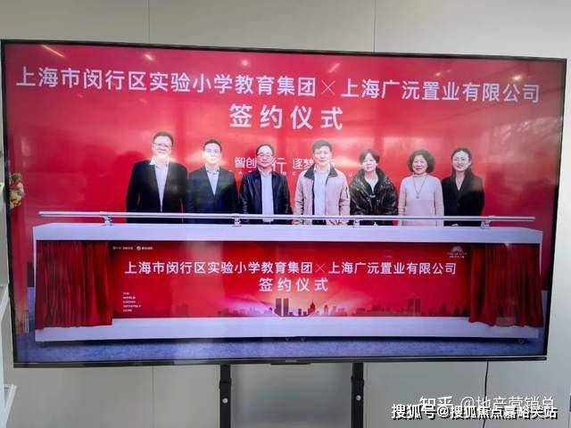 一进售楼处就是3月1日的大新闻屏幕,上海市闵行区实验小学教育集团与上海广沅置业有限公司进行了签约仪式,就闵行新城MHP0-0601单元16-04地块引进闵行区实验小学教育集团签订协议。
