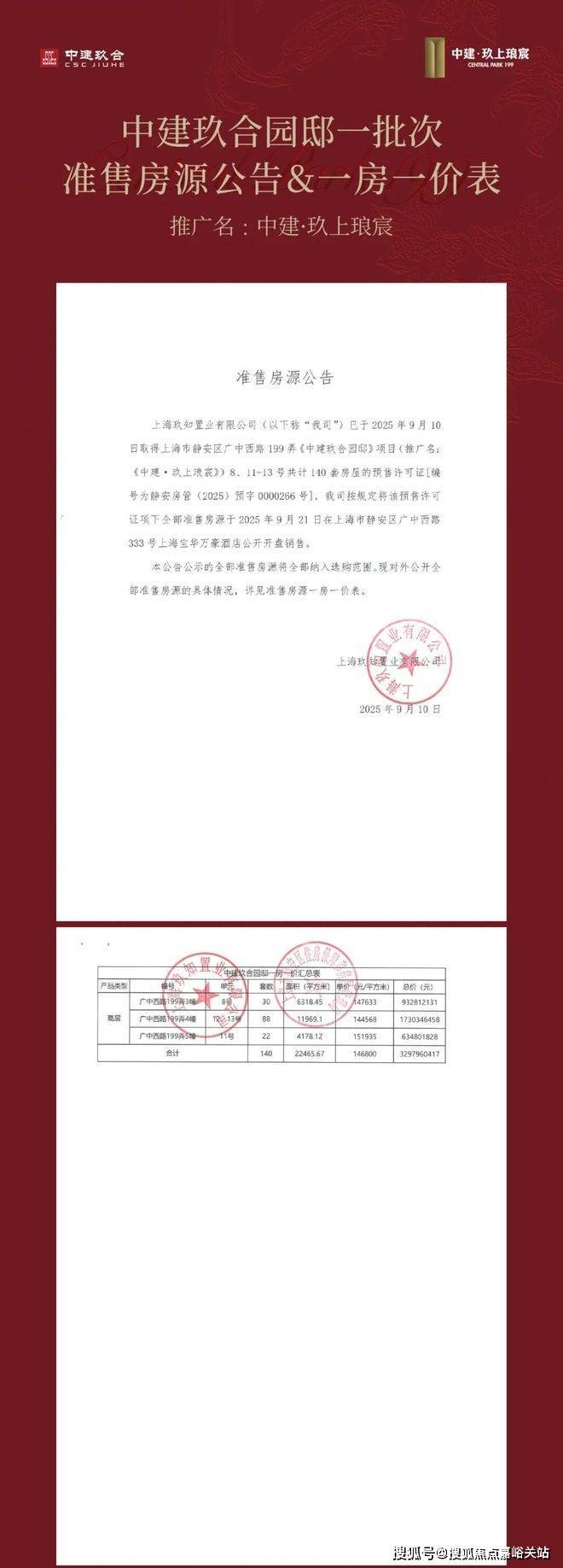 9月14日, 中建玖合在上海市2024年第五批供应商品住宅用地中,以 63.66亿元成功获取上海市 静安区灵石社区N070402单元094a-14地块,总计容建筑面积9.32万平方米。中建玖上琅宸售楼处电话:400-8894-986