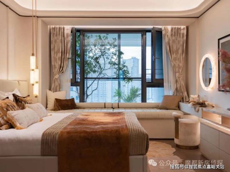 主卧飘窗、独立衣帽间+主卫设计 ,极大拓展视觉与空间体验,空间尺度感非常奢阔~