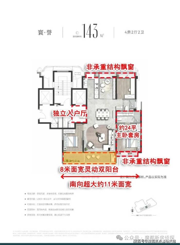 由此我们便得到了超大比例的 双阳台+非承重飘窗结构 的爆款神户型!并且拥有 豪宅标配准一梯一户!独立电梯厅的使用空间接近8㎡ ,可以做充足门外收纳空间!约143m²的户型打造出 堪比约160m²+的空间尺度感,堪称当下内环超级性价比王者产品!