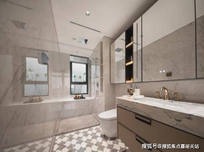 卫浴方面,地面及淋浴区,全部选用石材,墙面的公主白玉岩板,温润暖色调,质感非凡。唯宝(或同等品牌)台盆、主卫科勒(或同等品牌)复古龙头、高仪(或同等品牌)智能马桶、奢石台面、镜柜美妆冰箱、线性风暖……每一个细节,招商都为业主考虑到了。