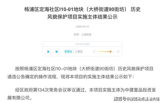 10月13日,✨✨✨【外滩元境】售楼处电话:4001185086✔✔✔❤❤❤上海市杨浦区政府网站发布重磅公示——定海社区I10-01地块✨✨✨【外滩元境】售楼处电话:4001185086✔✔✔❤❤❤(大桥街道90街坊)历史风貌保护项目实施主体结果正式出炉。