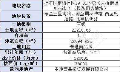 该项目是历史风貌保护项目,容积率1.4,建筑面积约2.97万㎡,限高12米,项目设立土地使用权底价,底价为225682万元, 楼板价约7.6万元/㎡