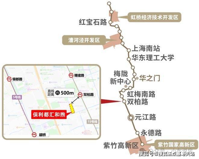 经15号线,向南可至紫竹高新区、交通大学、华东师范大学所在的大零号湾;✅✅保利都汇和煦售楼处电话:400 - 882 - 4258✅✅向北快速通达华泾、南站、漕河泾及古北等重要节点。