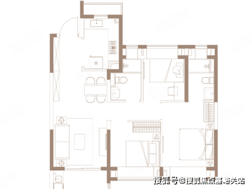 客餐厅一体化设计,连接南向观景阳台,形成约 30㎡的超大公区,空间开阔通透,无论是家庭聚会还是朋友小聚,都能从容应对。主卧套房设计,配备独立卫生间与观景飘窗,保障主人私密性与舒适度;两间次卧空间均衡,可作为儿童房、老人房或书房,满足多孩家庭与三代同堂居住需求。全明户型设计,双卫均为明卫,干湿分离,避免早高峰使用尴尬;厨房 U 型布局,洗切炒动线合理,操作高效便捷。
