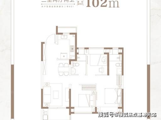 高层明星户型:建面约 101㎡三室两厅两卫
