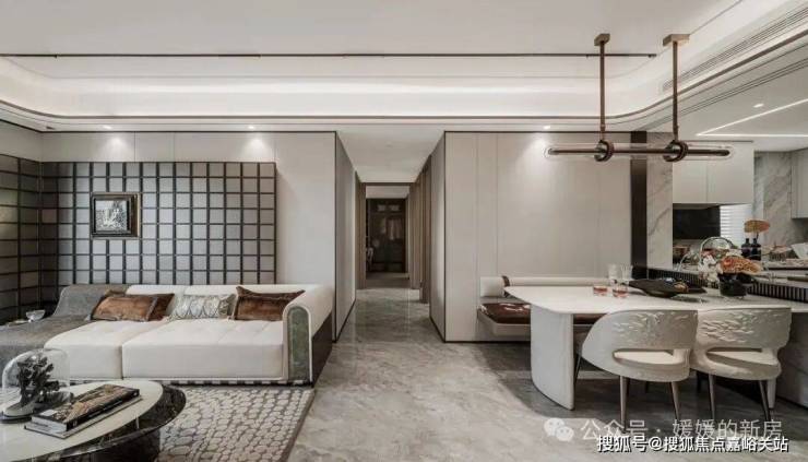 餐客厅踢脚线和厨房门框均为金属材质,开关面板全部定制同色系,把房屋美学做到极致……