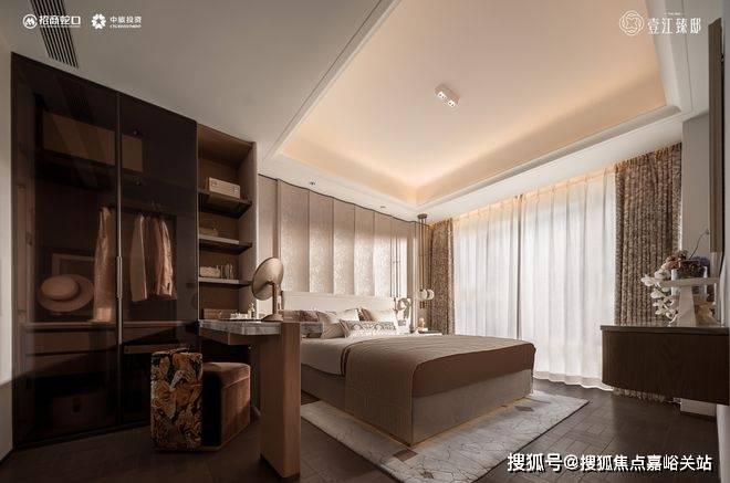 主卧套房的设计同样突破想象。整体面积约25㎡,更是在约270°转角飘窗的基础上,增设靠窗休闲沙发区,形成独立的“微型休憩系统”。