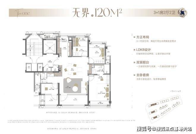 整体布局与140㎡户型基本一致,双南向阳台、独享电梯厅、6飘窗等户型拓展面积超过18㎡!