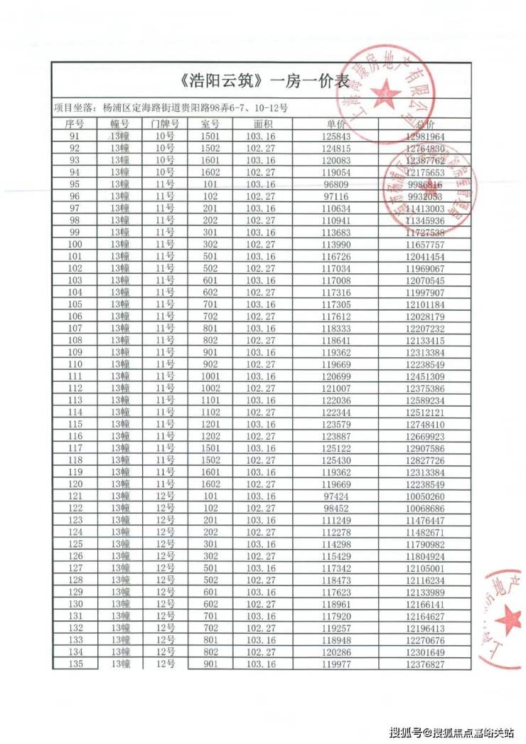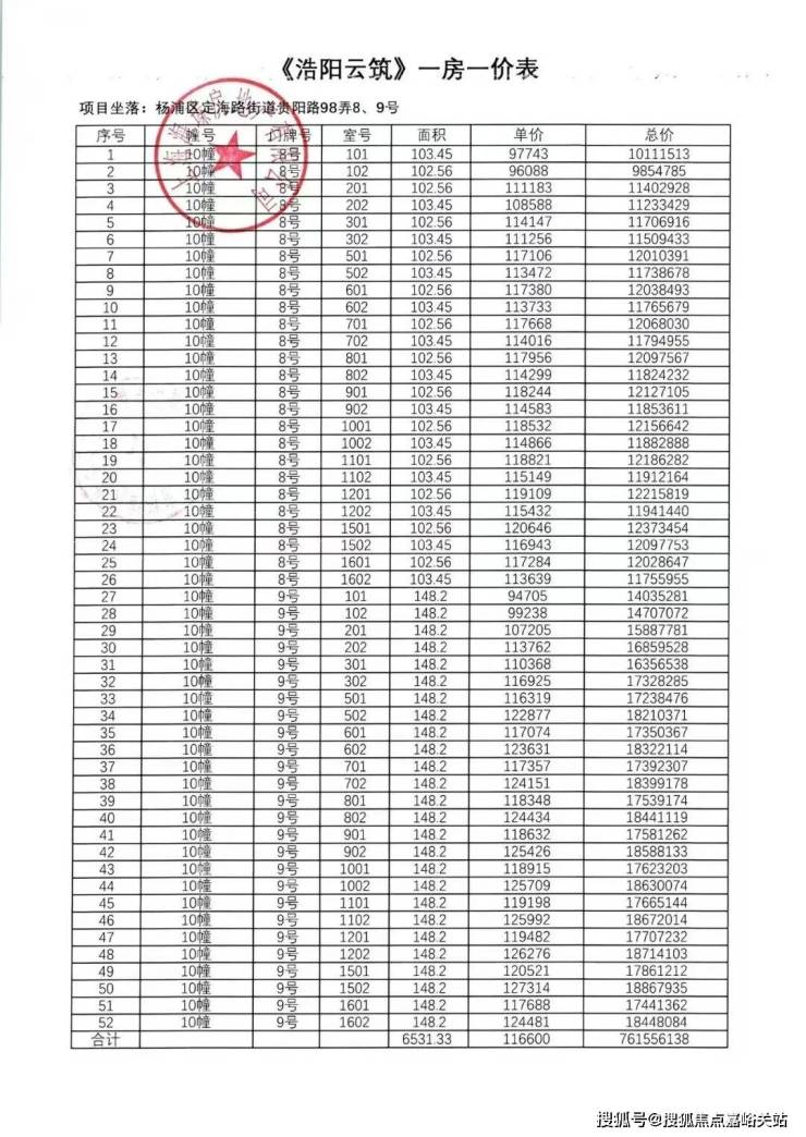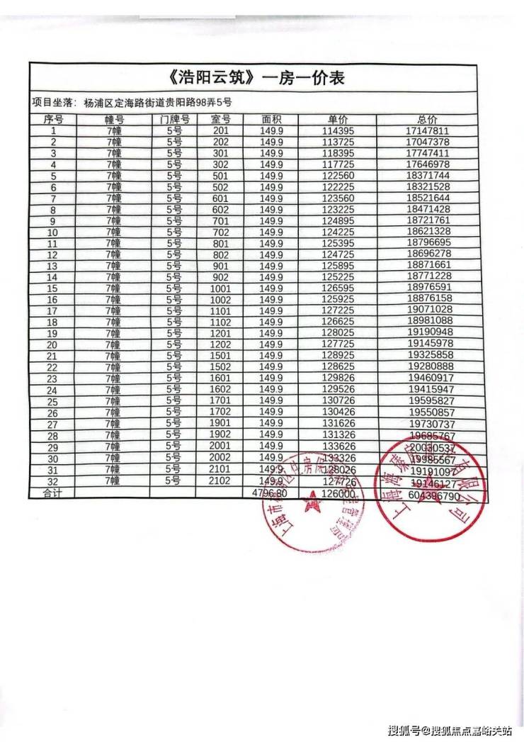 最新一房一价表: