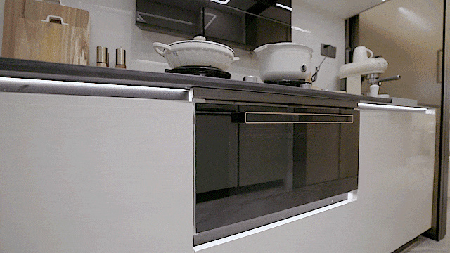 贝克巴斯零售款龙头,只需伸手感应就能出水;水槽下方的方太16件套洗碗机和方太净水器,既充分利用了下半部分空间,实用性又很高。