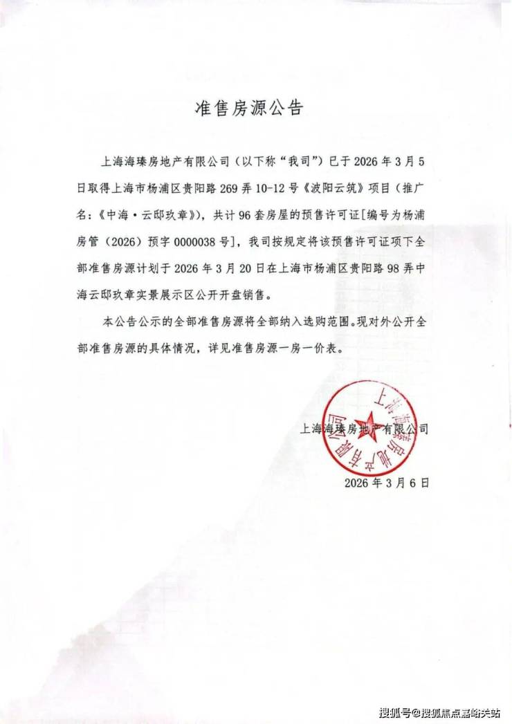 1.推广名为“云邸玖章”,备案名为“波阳云筑”,杨浦房管(2026)预字0000038号