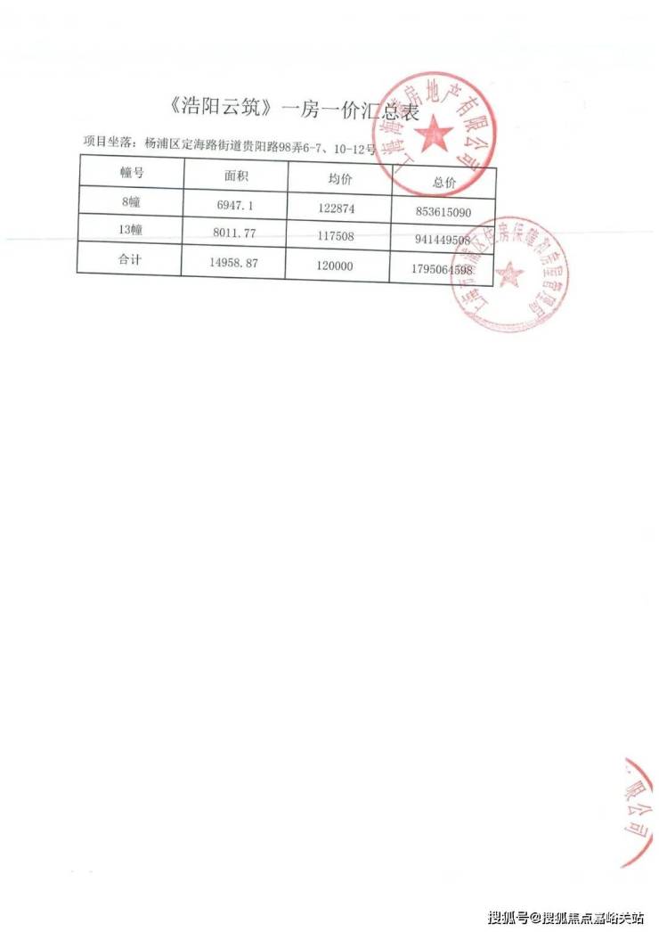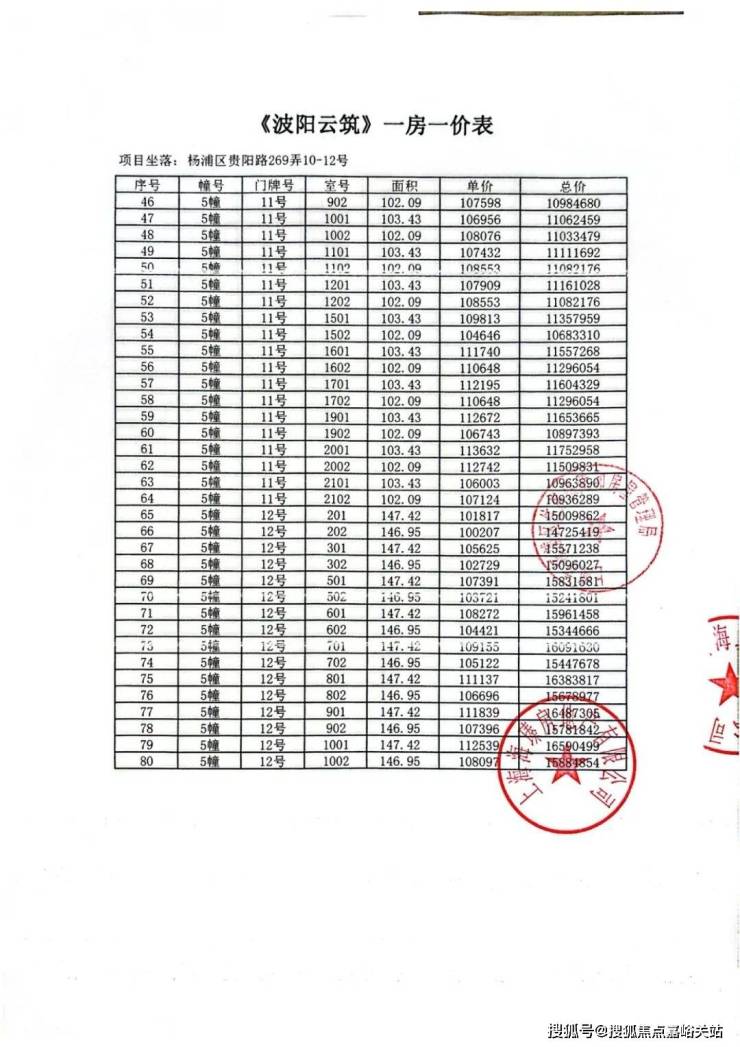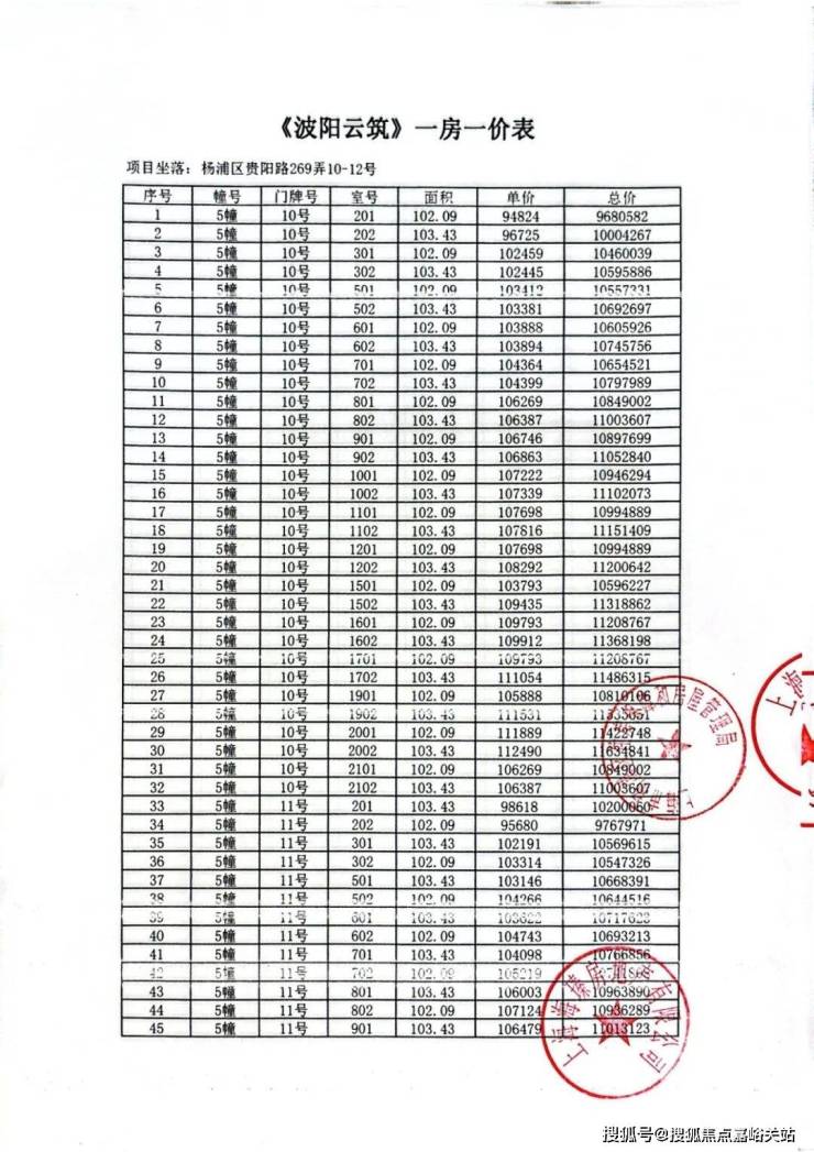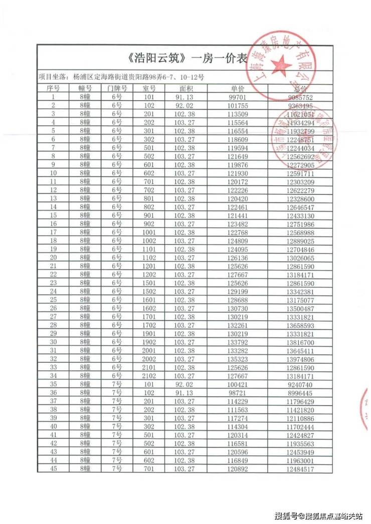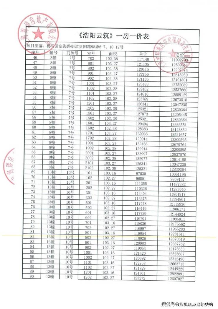 上期一房一价表:
