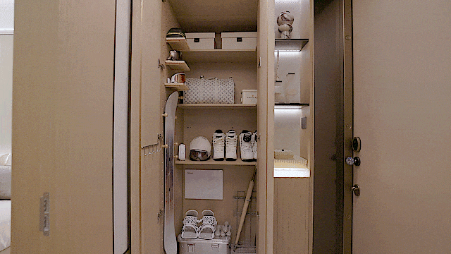 比如玄关部分别有洞天,步入式储藏空间面积接近4㎡,甚至比滨江部分230-350㎡的储藏室要来得大,提供了充足的空间来放置洗烘机、季节性物品、超大件行李箱、快递等等,家居生活更加井井有条。
