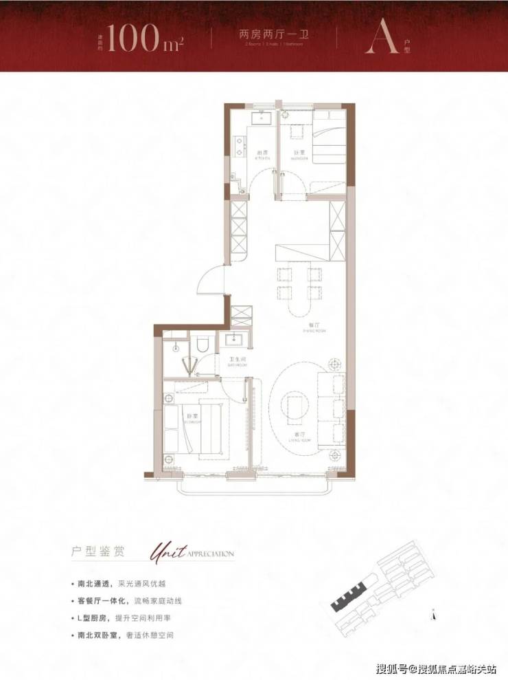 建面约100m²大2房户型,带来的不仅是方正的布局,也为购房者带来了体验感超绝的视野和采光。