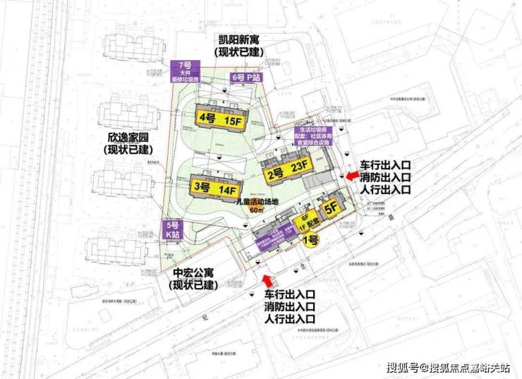 2号楼23层高层,3号楼14层,4号楼15层,2号楼的东北角是生活垃圾房,社区体育配套,食堂综合设施;