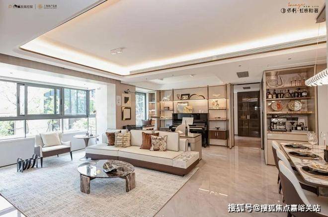 保利虹桥和著售楼处预约电话:400-8824-198◎LDKG大尺度窗墙比:LDKG一体化设计,约 40㎡一体大通厅,南向约3.9 米宽景阳台,连通客厅,可容纳瑜伽、品茶、观景等多种场景;开放式厨房与客厅无缝衔接,让烹饪变成家庭互动的温馨时刻。主卧270°L 型环幕大飘窗,拓宽视野,引入自然光和美景,搭配独立卫浴与奢阔空间,营造私享体验。