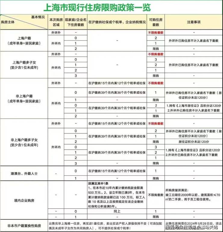 (注:1.外地户口在上海唯一住房在2024年5月28日后出售并网签,再购房不管是新房还是二手房不受社保与个税的限制,(不受环线限制)全上海房产都可以买。)