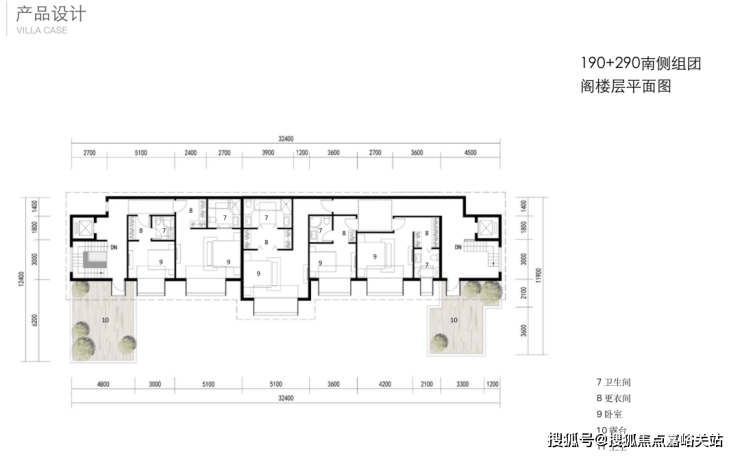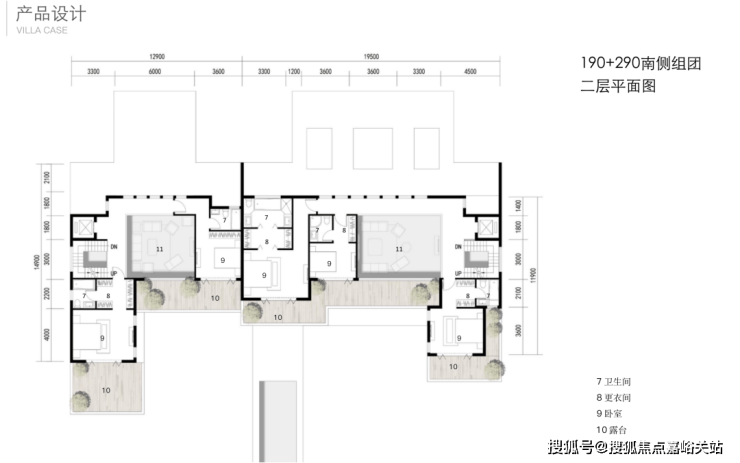 二层都是套房设计+露台+客厅挑空,190的二层是双套房、290的二层是三套房。