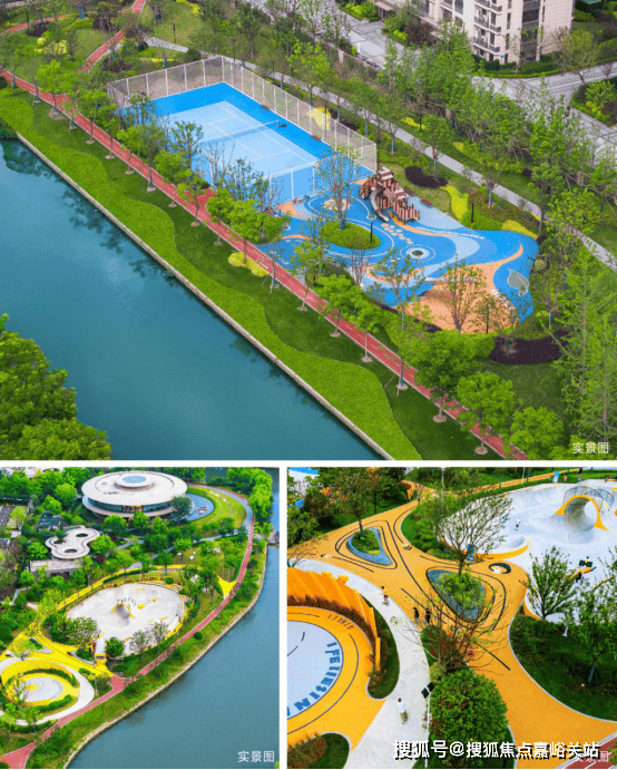 无限活力的滨江公园: 家门口约20万方滨江公园,涵盖3km滨江步道、约1300㎡滑板公园&篮球场、家楼下网球场、亲子乐园与露营基地等多元场域,共同构成一座全域、全龄、全时的活力之城。