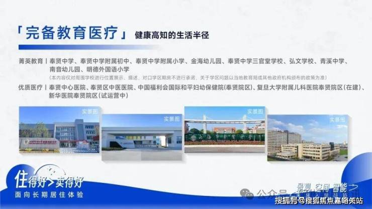 奉贤中心医院、复旦大学附属儿科医院奉贤院区(在建)、奉贤区中医医院、中国福利会国际和平妇幼保健院(奉贤院区)、新华医院奉贤院区(试运营中)