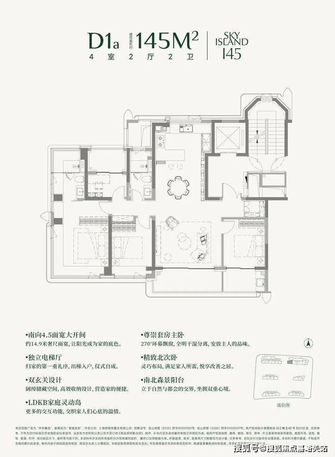 楼王约145㎡户型类一梯一户,南向约15米巨幕面宽,尺度感拉满。