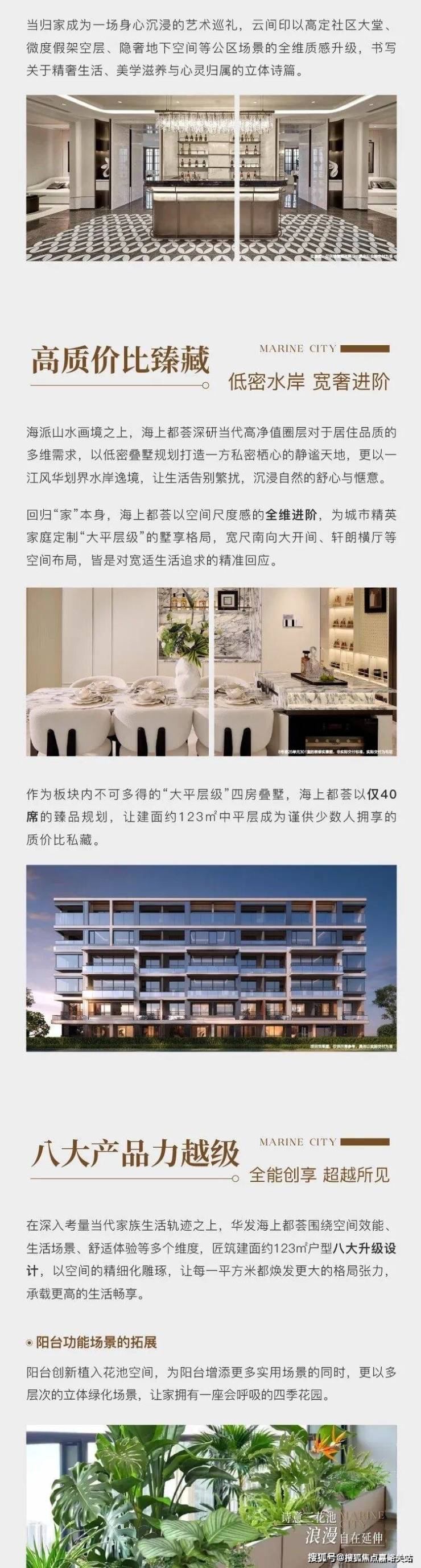 华发·海上都荟 邀请朗道国际景观设计倾力打造诗意园林,项目整体内外景观相互融合,以现代简约手法演绎城市山水意境,通过滨水景观与社区渗透,将项目自然水系引入场地中, 华发海上都荟售楼处电话:400-8894-986VIPLINE24小时在线预约📞📞同时,与建筑共同营造温馨的都市度假感,雅致的美学氛围让闲适重回生活,打造自然精致的美学人居环境,更以“五重体验空间”构建宜人归家品质生活。 华发海上都荟售楼处电话:400-8894-986VIPLINE24小时在线预约📞📞