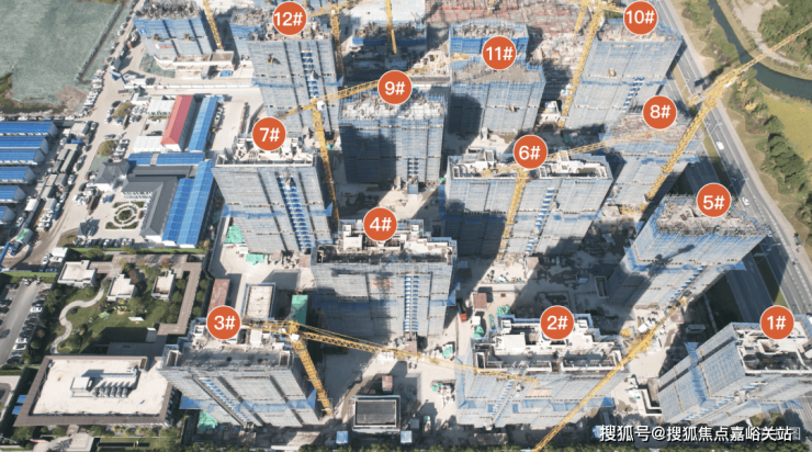 目前1#、2#、3#、4#、6#、7#结构均已完成,5# 15层墙柱施工中,16层梁板施工中;8# 13层墙柱施工中;9# 12层柱子合模;10# 屋面层施工中;11# 9层顶板施工中;12#花架浇筑!