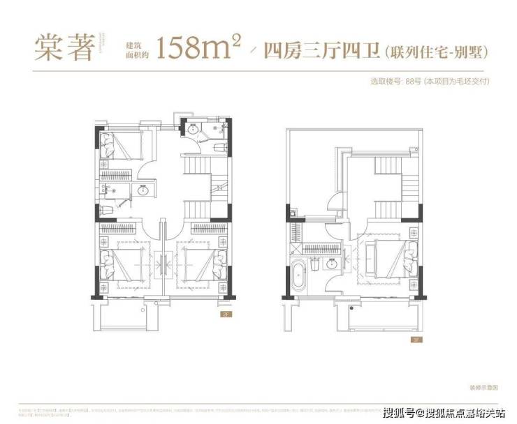 叠墅:叠墅一共四层,分为上/下叠,上叠建筑面积约139㎡,下叠建筑面积约142㎡。