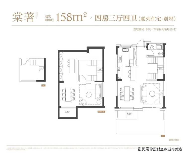 联排建面约158-165㎡, 地上三层+超大面积地下空间,地下采光井+星空露台, 有天有地!
