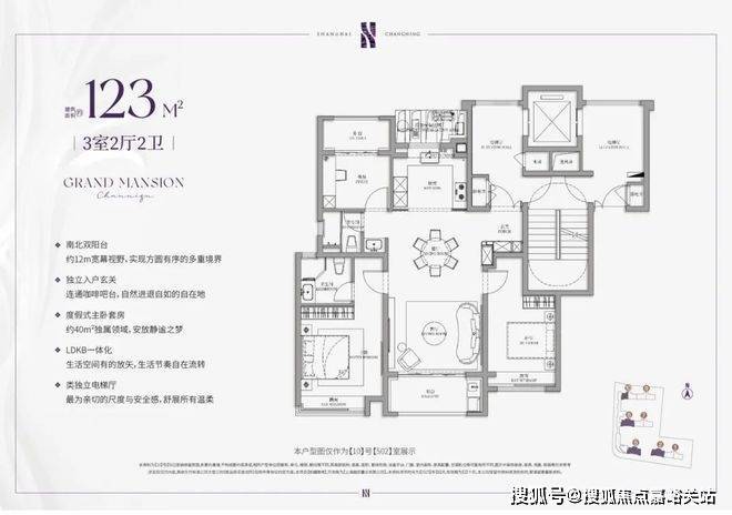 该户型是类独立电梯厅的设计,不仅维护了私密性,电梯厅也能成为家的延伸。