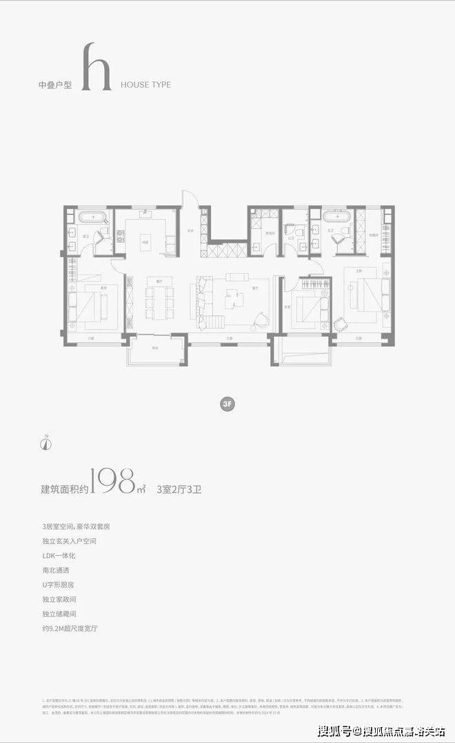 建面约138㎡的中间套户型,与边套略有差异,但同样尺度感强、细节满满