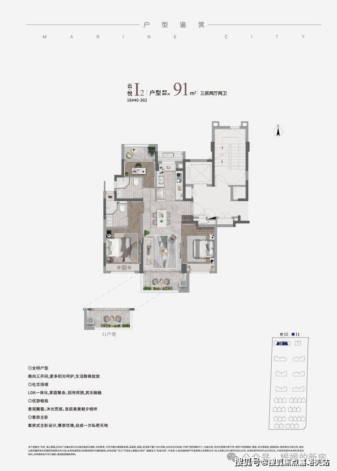 建面约91㎡的三房采用经典的飞机户型,南北通透,主卧带飘窗,晾衣服都能晒到太阳,适合当下年轻上班族对阳光和悦己体验的生活需求;