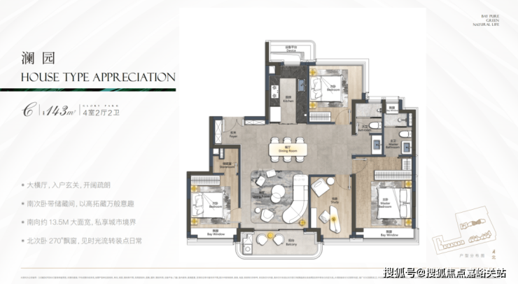 2、横跨客厅+南卧的阳台+三飘窗+入户超级玄关,收纳空间MAX!